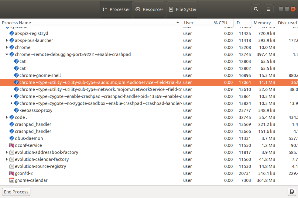 E, por exemplo, você provavelmente verá que há vários processos executando o mesmo programa de navegador (Firefox, Chrome, Edge, etc.). Eles normalmente executam um processo por aba, além de alguns outros processos extras.
